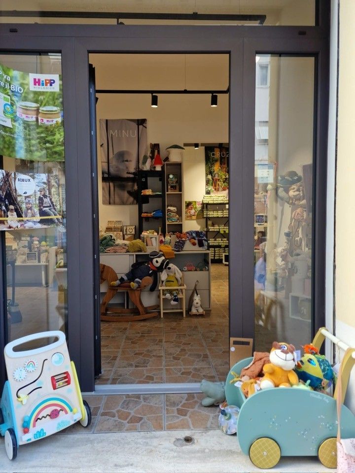 Il negozio offre anche incontri formativi e consulenze per le famiglie: massaggio infantile, ambiente preparato, babywearing, alimentazione complementare, sonno e relazione.